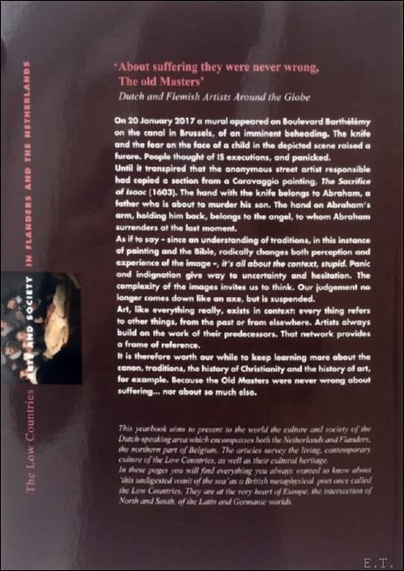 softcover, 315 pages .illustrated. ISBN 9789079705290. An English-language yearbook on the culture of the Low Countries. Covers literature, the arts, general societal issues and relations between the English and Dutch-speaking worlds. A very attractive book that showcases the diversity and vitality of Flemish and Dutch culture to the rest of the world. The theme of the 2018 issue is: ?About suffering they were never wrong, The old Masters? - Dutch and Flemish Artists Around the Globe.