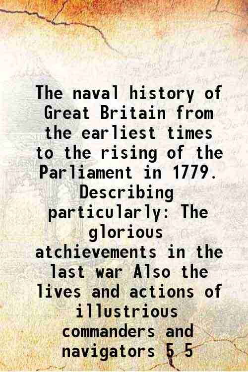 The naval history of Great Britain from the earliest times to the rising of the Parliament in 1779. Describing particularly The glorious atchievements in the last war Also the lives and actions of illustrious commanders and navigators Volume 5 1779