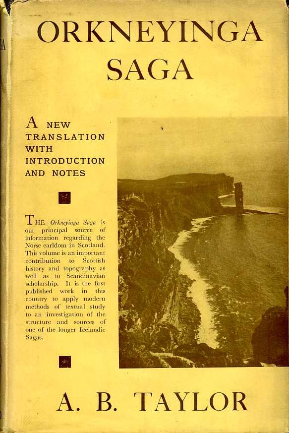 No marks or inscriptions to contents. A clean very tight copy with bright unmarked boards, very dusty top of page edges and minor bumping to spine foot and rear lower corner. Dusty dust jacket not price clipped with slight marking to sunned spine, small pieces missing from spine ends and small tears to upper corners. 445pp. The Saga presents a lively picture of the Norse earldom of Scotland in olden times. The author's study of the work sheds new light on problems of authorship, historicity and topography, and place and personal names. Very scarce in dust jacket.