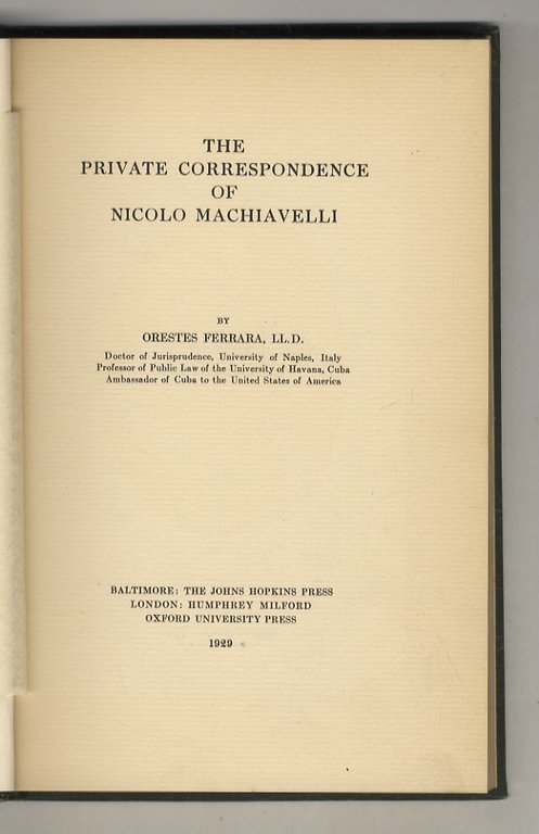 The private correspondence of Nicolo Machiavelli. | Libri antichi e moderni | Ferrara Orestes.