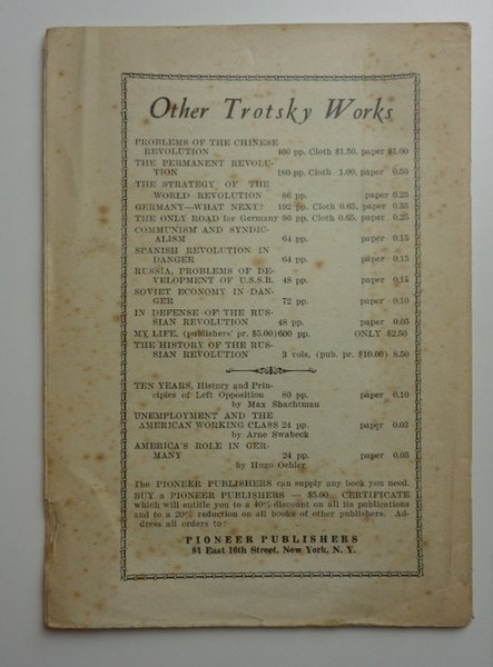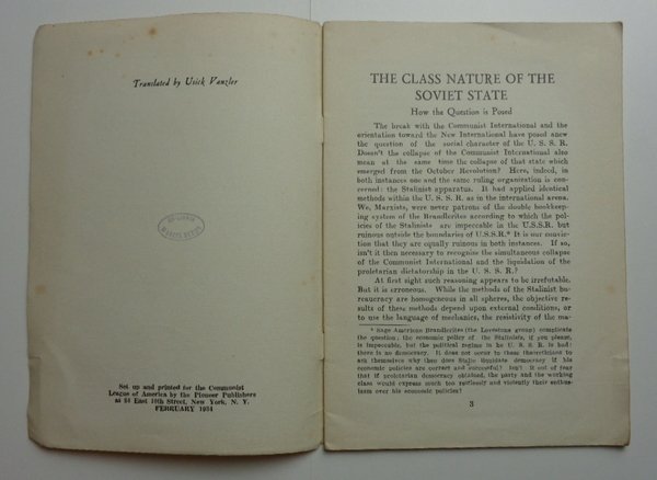 THE SOVIET UNION AND THE FOURTH INTERNATIONAL. The Class Naure of Soviet State. | Libri antichi e moderni | Leon Trotsky