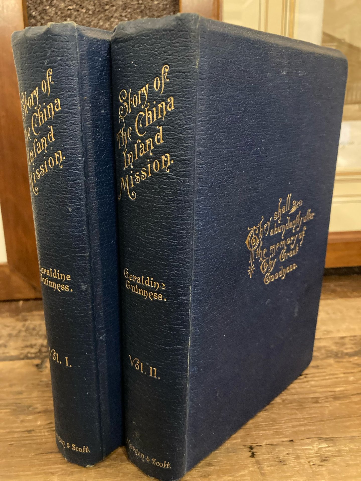 2 volumi in-8° (21x13cm), pp. XVII (1) 476 (2); XI (1) 512, tela cerata editoriale blu con titoli e motti impressi a secco e dorati ai dorsi e ai piatti, sguardie blu. Ritratto fotografico protetto da velina al controfontespizio del primo volume, 60 illustrazioni b/n nel testo, 12 tra mappe, cartine, schizzi e diagrammi di cui 3 cartine topografiche f/t a colori ripiegate (di cui una più volte ripiegata dell' intera Cina in fine del secondo volume). Ottimi esemplari genuini ed in gran parte intonsi. Non comune edizione originale di questa circonstaziata memoria dell' attività missionaria evangelica inglese nella Cina ottocentesca a partire dal 1854 capitanata da vari missionari tra cui, oltre l autrice, ricordiamo William Burns, James Taylor e George Pearse. Tra le colonie si ricordano quelle di Hang-Chau; Shen-Si; Ho-Nan; Si-Chuen; Kiang-Su. Descritta la Chefoo convention del 1876; viaggi esplorativi di missionari in varie regioni anche remote (ad es. nel Tibet)