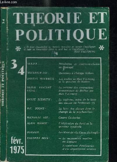 THEORIE ET POLITIQUE N�34 FEVRIER 1975 Sommaire : R�volution et contre-r�volution au Portugal - Questions � Philippe Sollers - Les in�dits de Mao Ts�-toung et la question de Staline - etc.