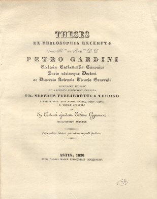 Theses ex philosophia excerptae. | Libri antichi e moderni | Gardini Peto.