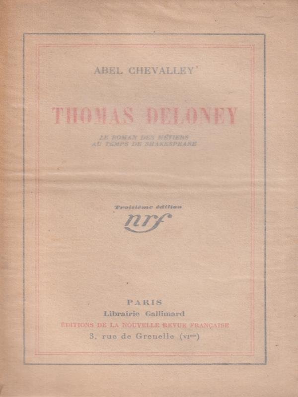 Thomas Deloney | Libri antichi e moderni | Chevalley, Abel