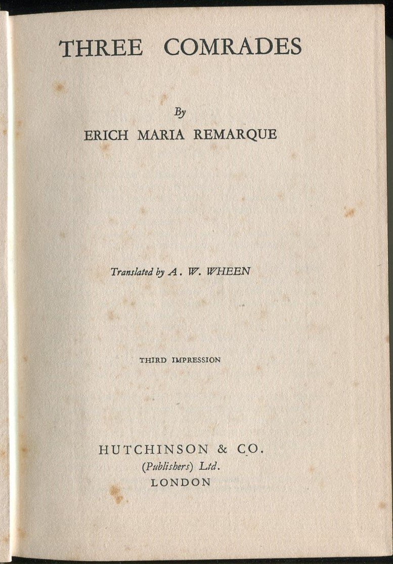 Three Comrades | Libri antichi e moderni | Remarque, Erich Maria
