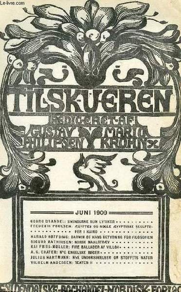 TILSKUEREN, JUNI 1909 (INDHOLD: GEORG BRANDES: SWINBURNE SOM LYRIKER. FREDERIK POULSEN: �GYPTEN OG NOGLE �GYPTISKE SKULPTURER i KAIRO. HARALD H�FFDING: DARWIN OG HANS BETYDNING FOR FILOSOFIEN. SIGURD MATHIESEN: NORSK MAALSTR�V.) | Libri antichi e moderni | Collectif