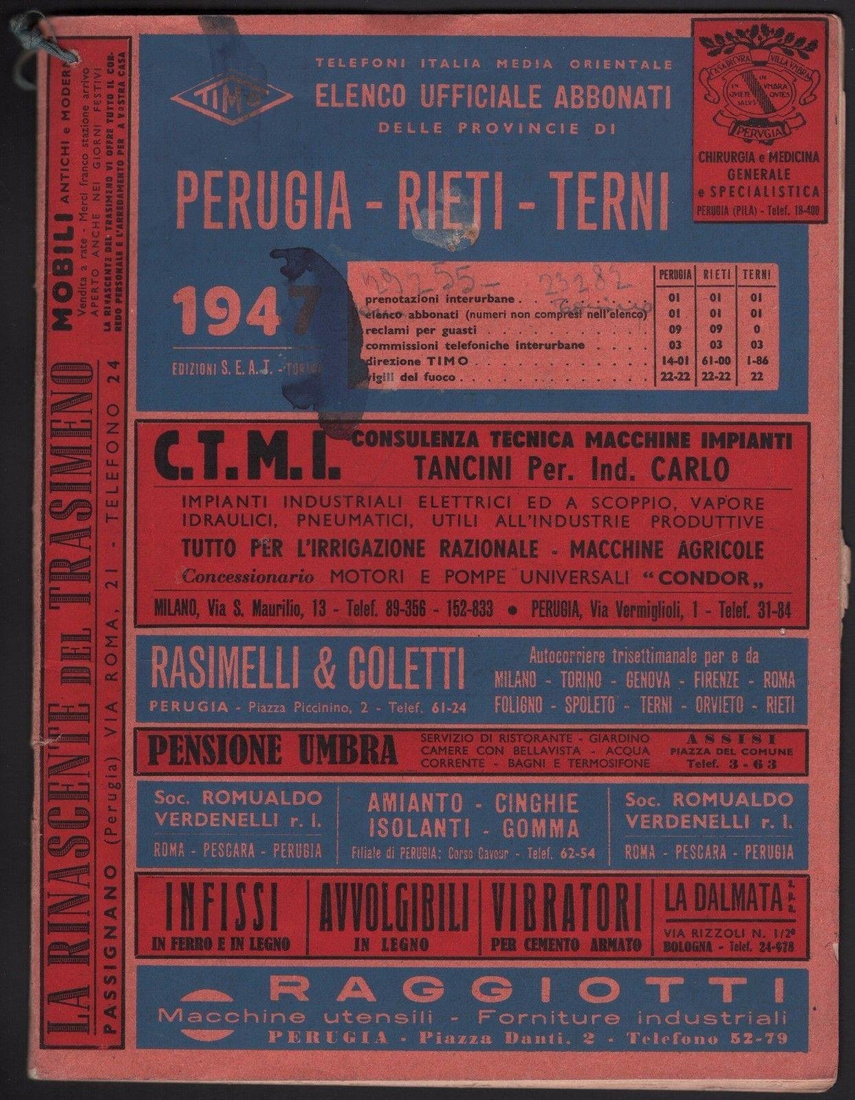 Timo-Elenco Telefonico-Perugia-Rieti-Terni-Foligno-Spoleto-Assisi-1947-L 4551 | Libri antichi e moderni | D. Guicciardi