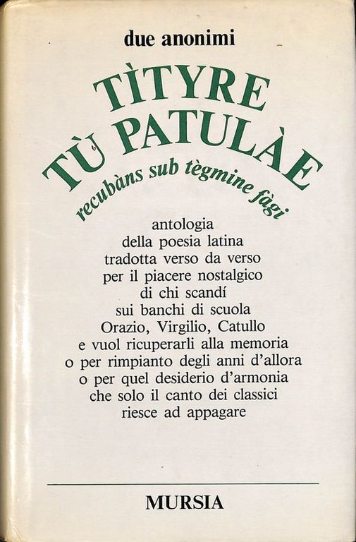 Antologia della poesia latina tradotta verso da verso per il piacere nostalgico di chi scandì sui banchi di scuola Orazio, Virgilio, Catullo e vuol ricuperarli alla memoria o per rimpianto degli anni d'allora o per quel desiderio d'armonia che solo il canto dei classici riesce ad appagare. A cura di Ezio Savinio, presentazione di Giorgio Manganelli. VIII-304 p., f.to cm 21,5x14, coprtina rigida con sovraccoperta. Ottime condizioni