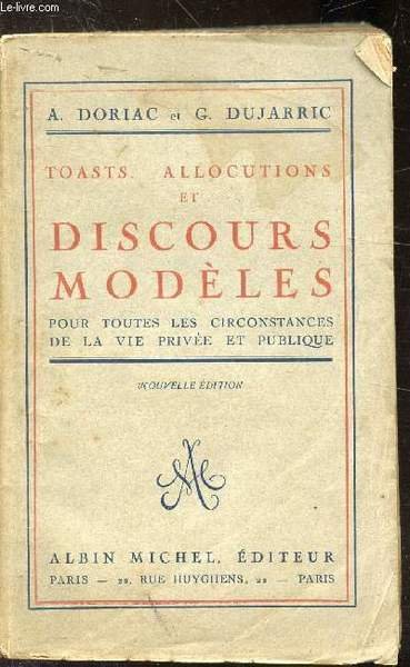 TOASTS. ALLOCUTIONS ET DISCOURS MODELES POUR TOUTES LES CIRCONSTANCES DE LA VIE PRIVEE ET PUBLIQUE | Libri antichi e moderni | Doriac A. Et G. Dujarric
