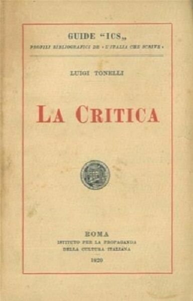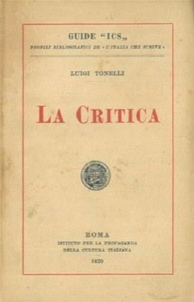 TONELLI LUIGI - LA CRITICA -IST. PROPAGANDA CULTURA ITALIANA 1920 GUIDE ICS I°ED