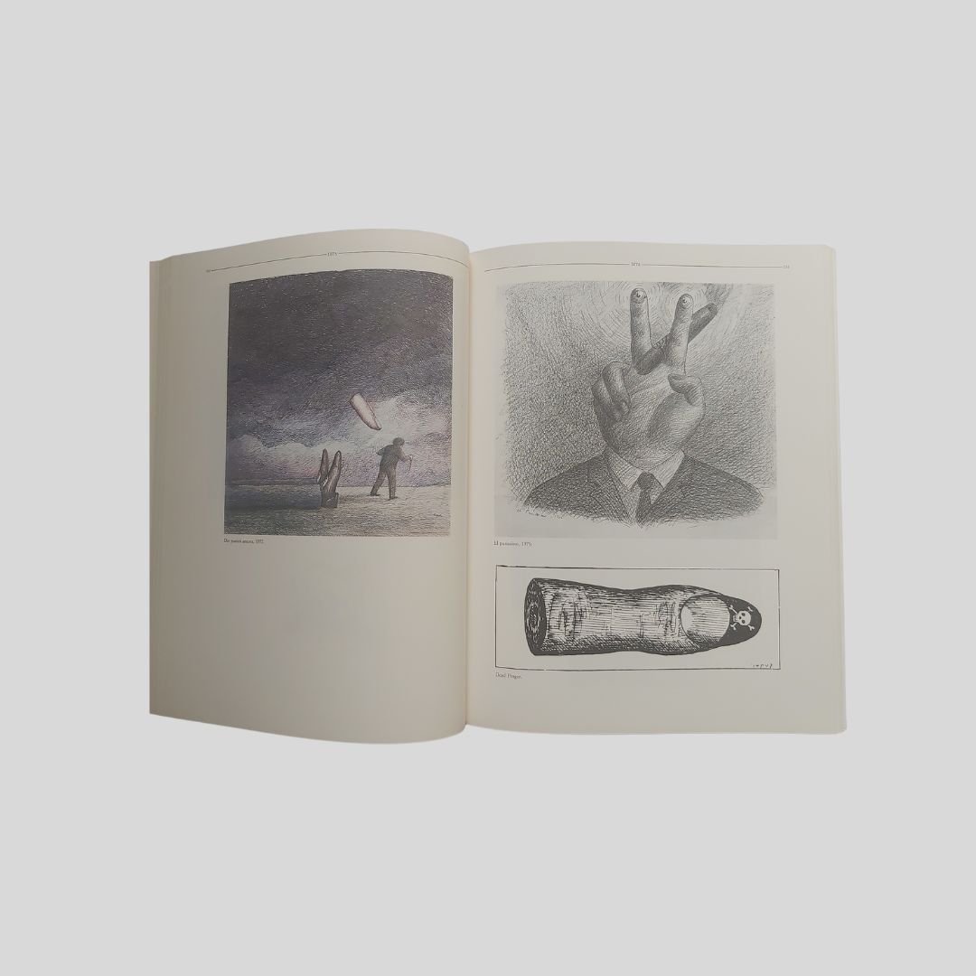 In 4° (cm 31,7), pp. 255 [1], con numerose illustrazioni in b.n. e a c. . Copertina editoriale illustrata a c. In Buone condizioni. Topor: catalogo della mostra, Milano, Palazzo Reale, settembre-novembre 1986. Roland Topor (1938-1997) è stato illustratore, paroliere, drammaturgo, scrittore, attore, scenografo francese. Studia all’École nationale supérieure des beaux-arts di Parigi e, dal 1961 al 1965, collabora alla rivista satirica mensile Hara-Kiri, dove si fa notare per un cinico humor nero, tipico dei suoi lavori. È tra i fondatori, nel 1962, del celebre movimento neo-surrealista Panico, assieme a Fernando Arrabal e Alejandro Jodorowsky.
