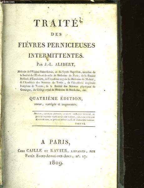 TRAITE DES FIEVRES PERNICIEUSES INTERMITTENTES | Libri antichi e moderni | Alibert J.L.