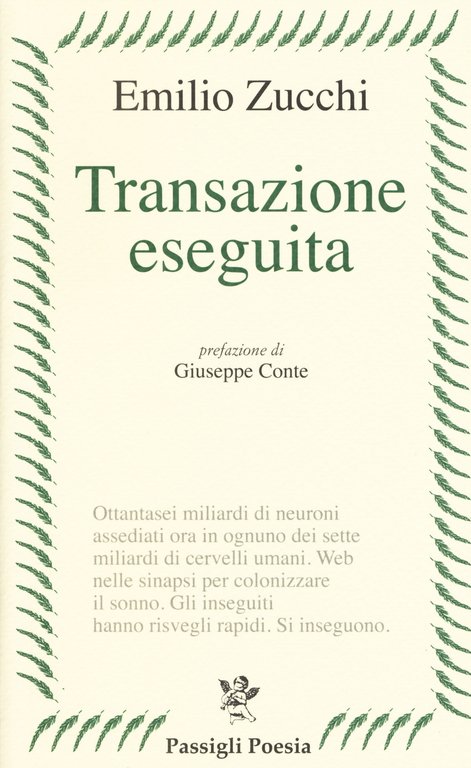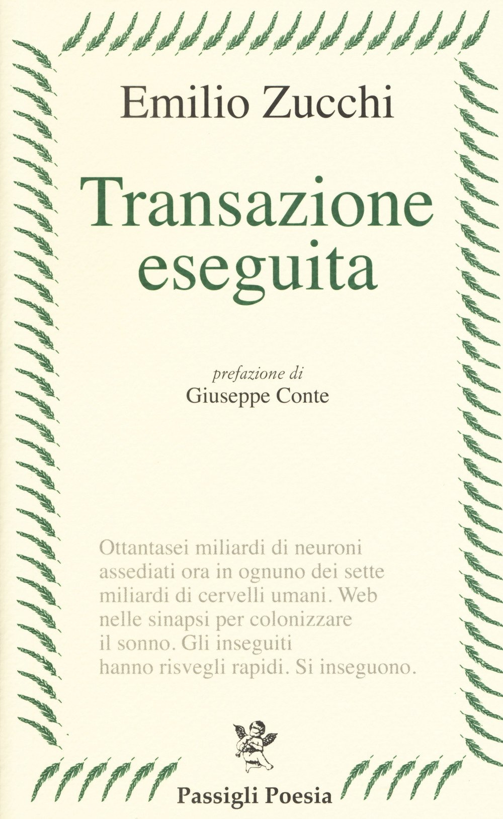 «C'è una coerenza tematica, ideale, musicale, ma di una musica straziante, dura, senza compiacimento, tra l'inizio e la conclusione di questo nuovo libro di Emilio Zucchi (.). Il titolo 'Transazione eseguita' ne dice in pieno la tonalità: la qualità disumanizzante e mortifera del linguaggio tecnico-economico è declinata nella sua versione (apparentemente) vincente e definitiva: il lettore ci sente il rumore sordo delle operazioni di un bancomat.» (Dalla prefazione di Giuseppe Conte)