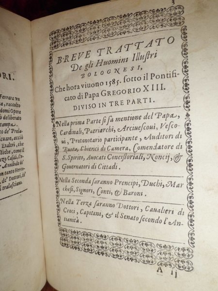 Trattato Degli Huomini Illustri di Bologna diviso in tre parti.