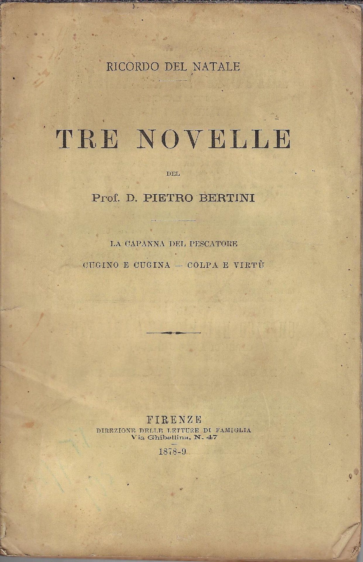 Tre novelle : la capanna del pescatore - colpa e virtù - cugino e cugina | Libri antichi e moderni | Bertini, Pietro, ,Bertini, Pietro