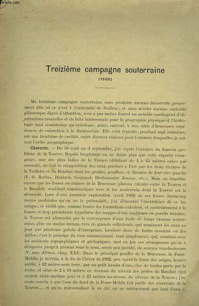 TREIZIEME CAMPAGNE SOUTERRAINE (1900). | Libri antichi e moderni | E.-A. Martel