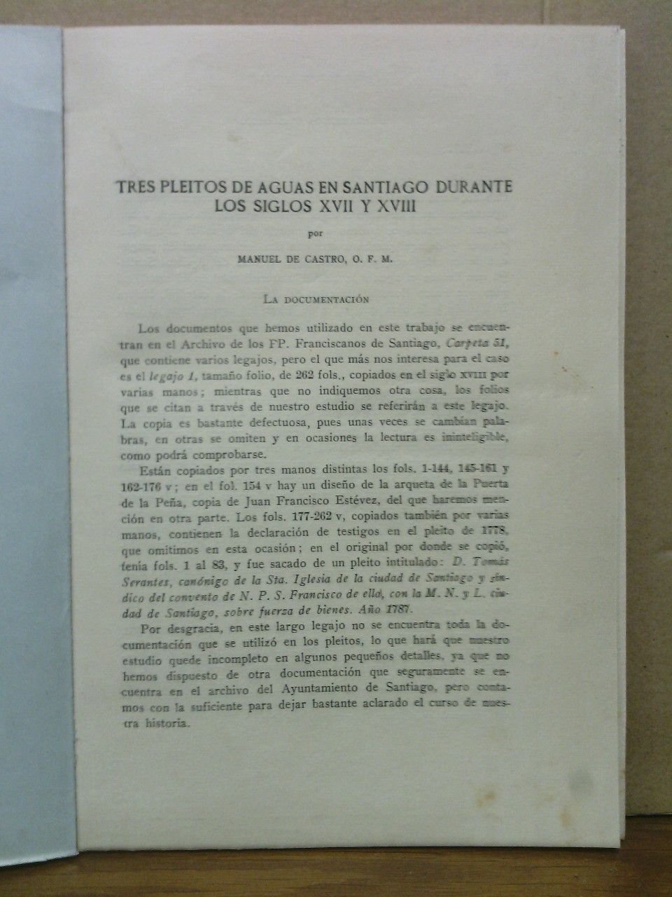 Tres pleitos de aguas en Santiago durante los siglos XVII y XVIII | Libri antichi e moderni | Castro, Manuel De, O. F. M.