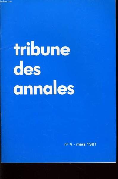 TRIBUNE DES ANNALES n�4 : la diff�rence qui lui est due, au risque de deplaire, l'�cole du bonheur, la ligue universelle de Francs-Ma�ons, Racisme et Action, Contre la mixit� au G.OD.F, apocalypse.