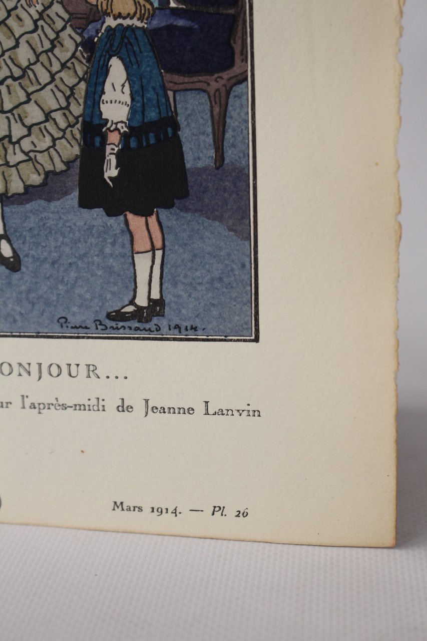 Tu diras bonjour.Robes de jeunes filles et d'enfant pour l'après-midi de Jeanne Lanvin (pl.26, La Gazette du Bon ton, 1914 n°3) | Libri antichi e moderni | Pierre Brissaud