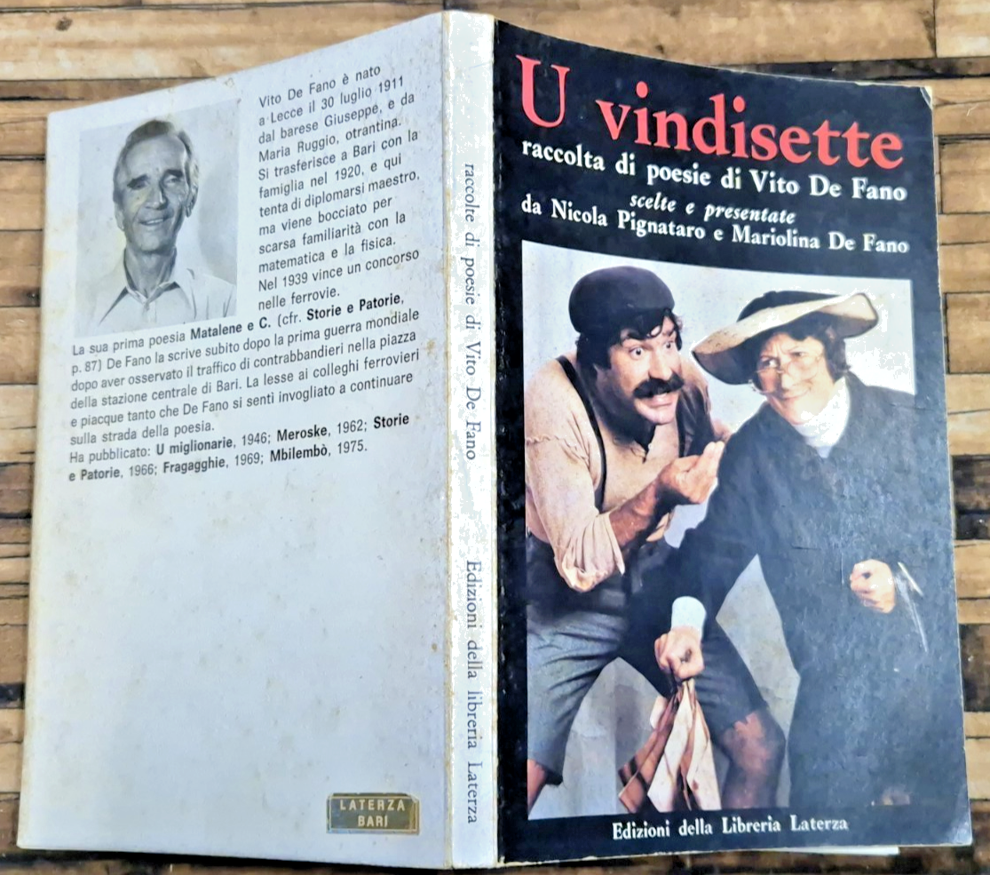 U VINDISETTE di Vito De Fano 1980 Laterza Poesie Dialetto Barese Libro autografo | Libri antichi e moderni |
