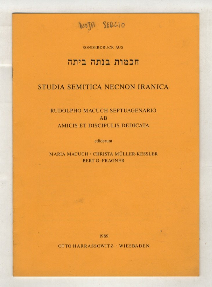 Wiesbaden, Otto Harrassowitz, 1989, in-8, br. editoriale, pp. numerate da 188 a 194. Estratto da "Studia semitica necnon Iranica Rudolpho Macuch septuagenario ab amicis et discipulis dedicata".
