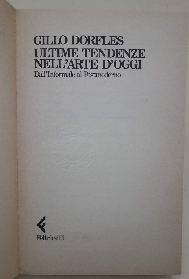 ULTIME TENDENZE NELL'ARTE D'OGGI-DALL'INFORMALE AL POSTMODERNO(1987) | Libri antichi e moderni | Dorfles Gillo