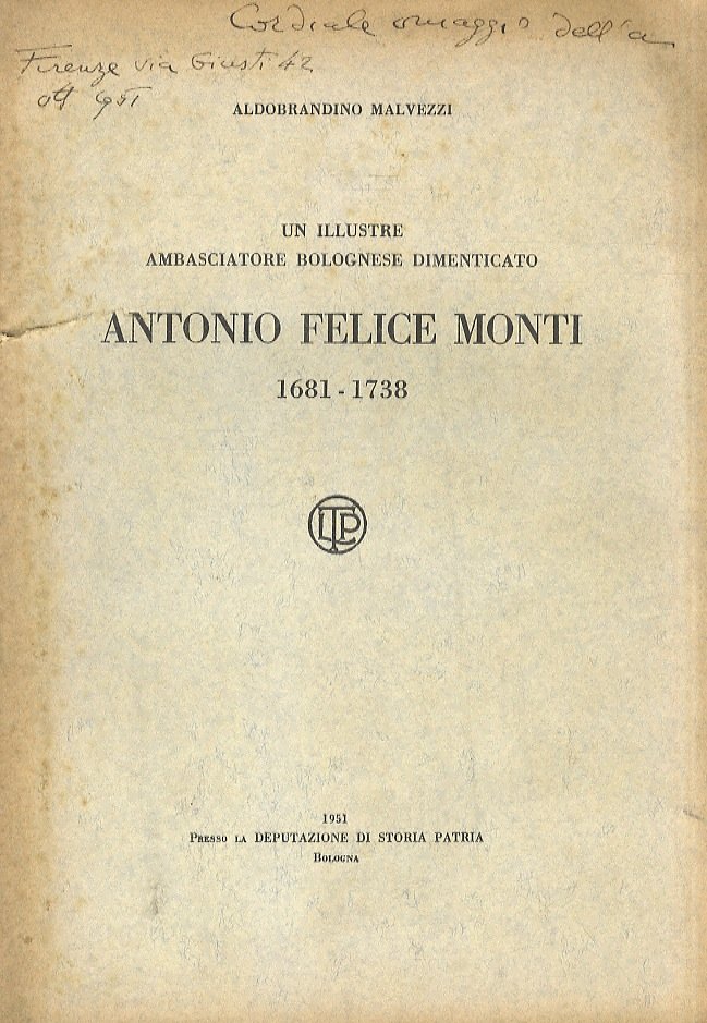 Un illustre ambasciatore bolognese dimenticato. Antonio Felice MOnti, 1681 - 1738. | Libri antichi e moderni | Malvezzi Aldobrandino.