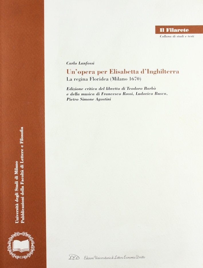 Un'opera per Elisabetta d'Inghilterra. La regina Floridea (Milano 1670)., Milano, LED - Edizioni Universitarie di Lettere Economia e Diritto, 2010 | Libri antichi e moderni | Lanfossi Carlo
