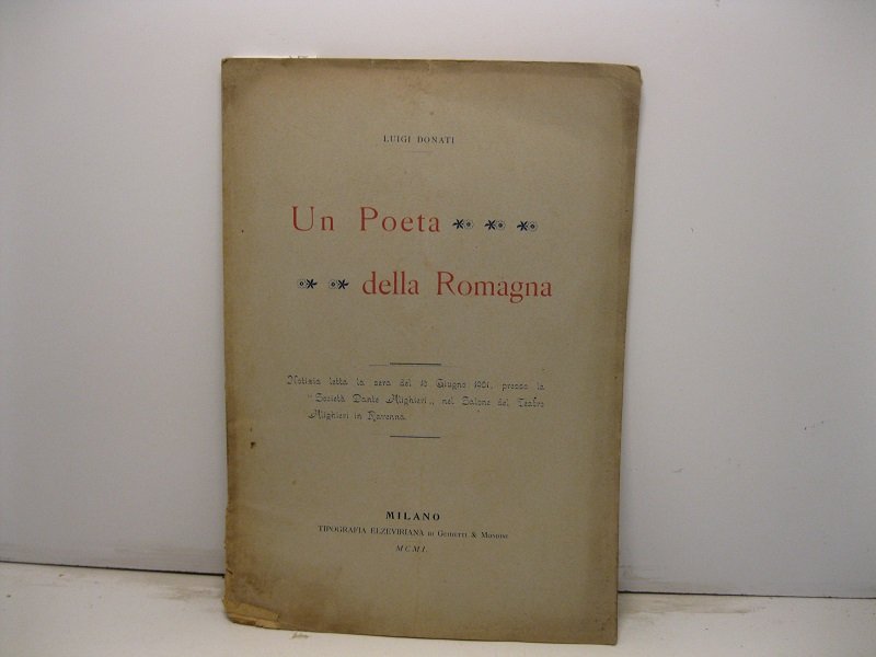 Un poeta della Romagna. Notizia letta la sera del 16 giugno 1901 presso la Societa' Dante Alighieri del Teatro Alighieri in Ravenna | Libri antichi e moderni | Donati Luigi