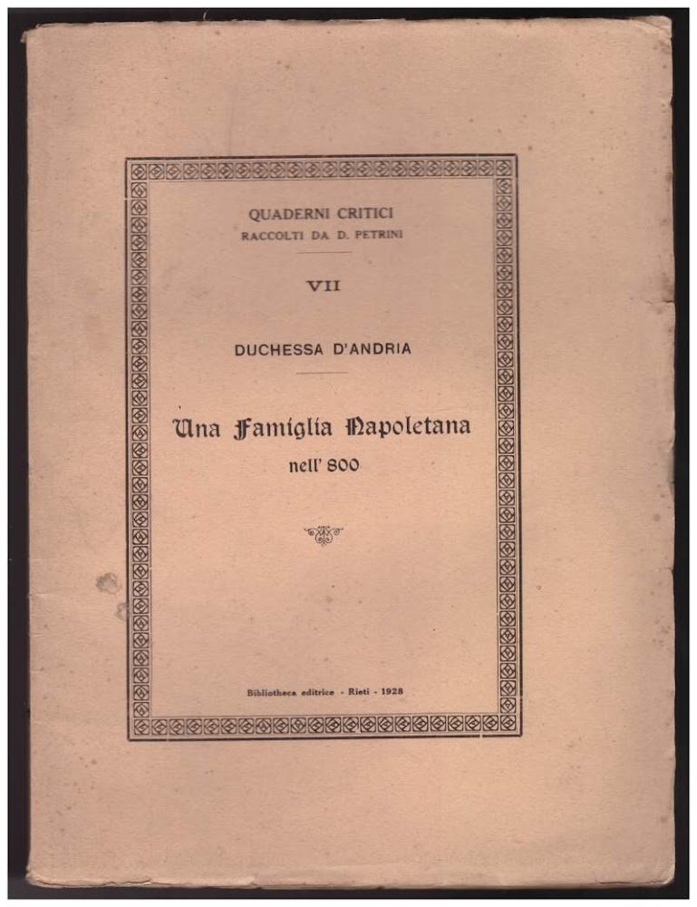 UNA FAMIGLIA NAPOLETANA NELL'800 | Libri antichi e moderni | Duchessa D''Andria
