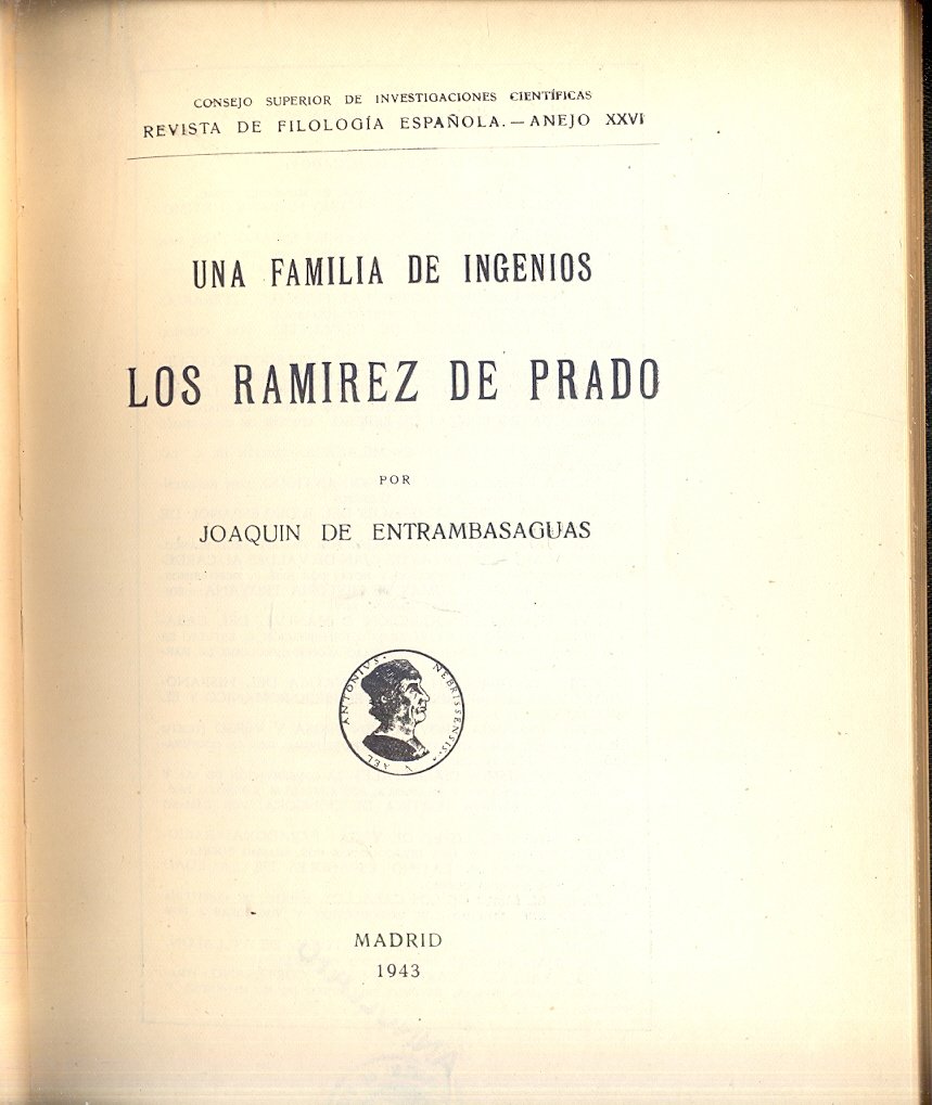 Una familia de ingenios los Ramirez de Prado. | Libri antichi e moderni | De Entrambasaguas Joaquin.