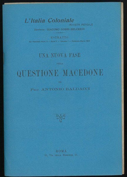 Una nuova fase della questione macedone | Libri antichi e moderni | Baldacci Antonio, Baldacci Antonio