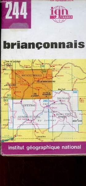 1979. In-Plano. En feuillets. Bon �tat, Couv. convenable, Dos satisfaisant, Int�rieur frais. Une carte en couleur : Carte touristique Brian�onnais - Echelle 1 : 25 000 - n�244 - carte d'environ 90 x 122 cm. . . . Classification Dewey : 912-Atlas, cartes et plans
