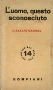 Titolo Originale: Man The unknown - Traduzione Italiana del Dott. V. Porta - Collana Avventure del pensiero n. 14 - in 8° - pp.344 - Cartonata con sovracopertina - L'autore ' uno dei massimi chirurghi esperimentatori del mondo,vincitore del Premio Nobel 1912,concessogli per la scoperta di un nuovo metodo di sutura dei vasi sanguigni e di trapianto degli organi '