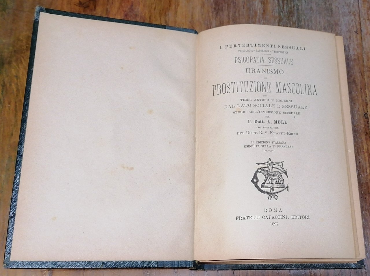 Uranismo e prostituzione mascolina nei tempi antichi e moderni dal lato sociale e sessuale. Studio sull'inversione sessuale per il Dott. A. Moll.