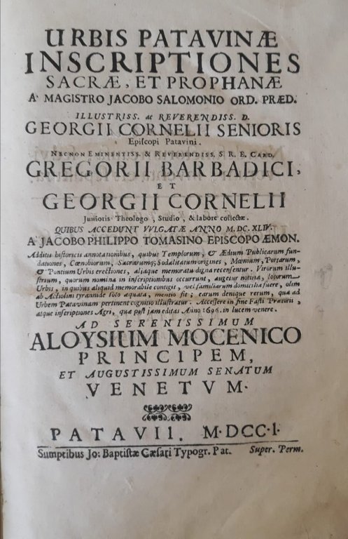 URBIS PATAVINAE INSCRIPTIONES SACRAE, ET PROPHANAE (...) | Libri antichi e moderni | SALOMONIUS J. - CORNELIUS G. - BARBADICI G. - CORNELIUS G., ,SALOMONIUS J. - CORNELIUS G. - BARBADICI G. - CORNELIUS G.