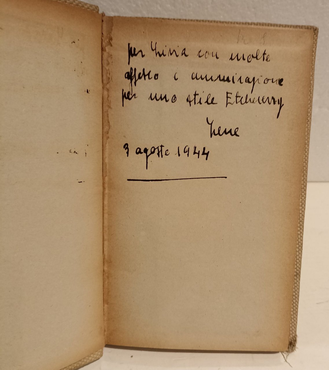 In 8', tela, tasselli al dorso, dedica dell'autrice in antiporta, prima edizione; tela consumata agli ang. inf., foglio della dedica in parte staccato, tagli e pagine bruniti, discrete condizioni. ***Due to bureaucratic reasons, books dated over 70 years old cannot be immediately exported, please contact us before placing the order.***