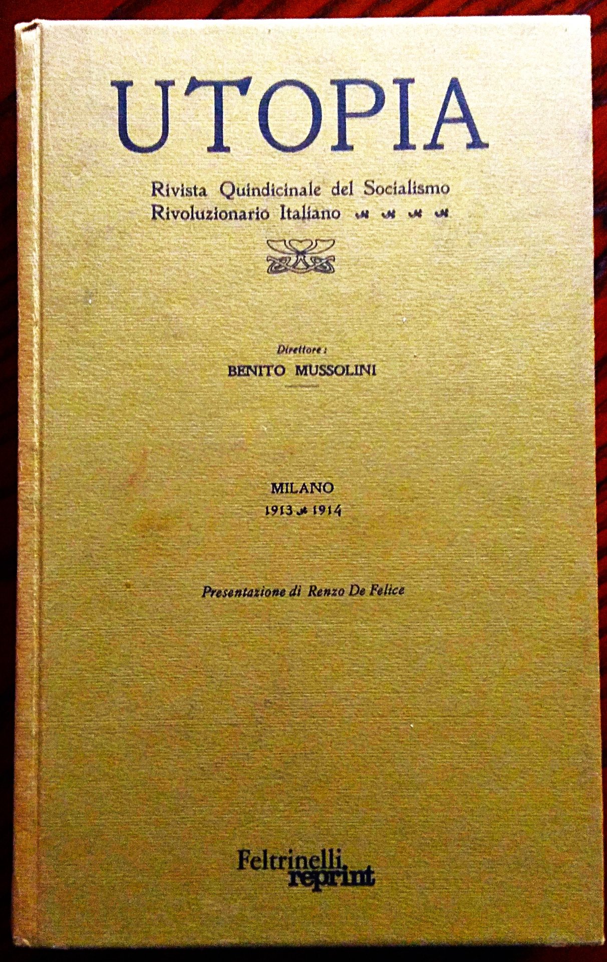 Utopia. Rivista Quindicinale del Socialismo Rivoluzionario Italiano. Direttore Benito Mussolini. presentazione di Renzo De Felice. Milano Anno I. N. 1, 22 Novembre 1913 - Anno II. N. 13-14, 15-31 Dicembre 1914.