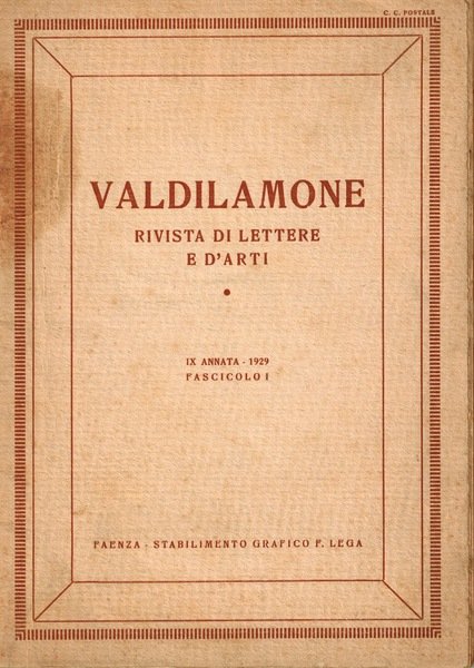 VALDILAMONE - RIVISTA DI LETTERE E D'ARTI. IX ANNATA - 1929 FASCICOLO 1