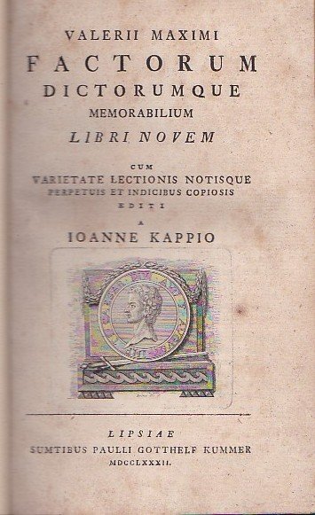 Valerii Maximi Factorum Dictorumque Memorabilium Libri Novem cum varietate lectionis nitisque perpetuis et indicibus copiosis editi a Ioanne Kappio | Libri antichi e moderni | Valerio Massimo