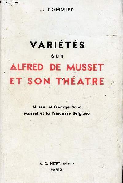 Variétés sur Alfred de Musset et son théâtre - Musset et George Sand - Musset et la princesse Belgioso | Libri antichi e moderni | Pommier J.