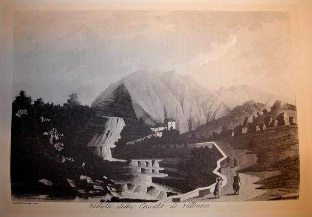 VEDUTA DELLA CASCATA DI VALBURA. Riproduzione tratta da "Viaggio pittorico della Toscana" di Jacopo e Antonio Terreni.