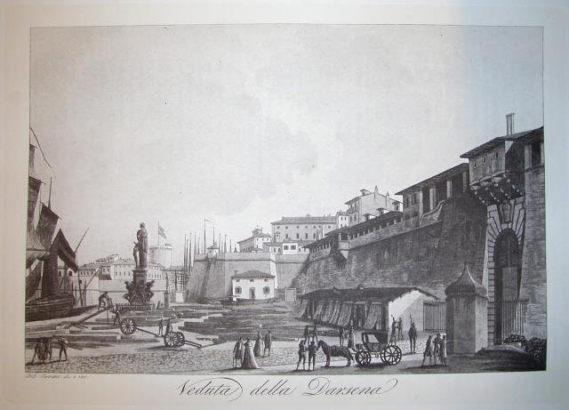 VEDUTA DELLA DARSENA DI LIVORNO. Riproduzione tratta da "Viaggio pittorico della Toscana" di Jacopo e Antonio Terreni. | Libri antichi e moderni |