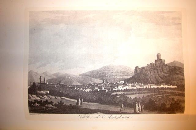 VEDUTA DI MODIGLIANA. Riproduzione tratta da "Viaggio pittorico della Toscana" di Jacopo e Antonio Terreni. | Libri antichi e moderni |