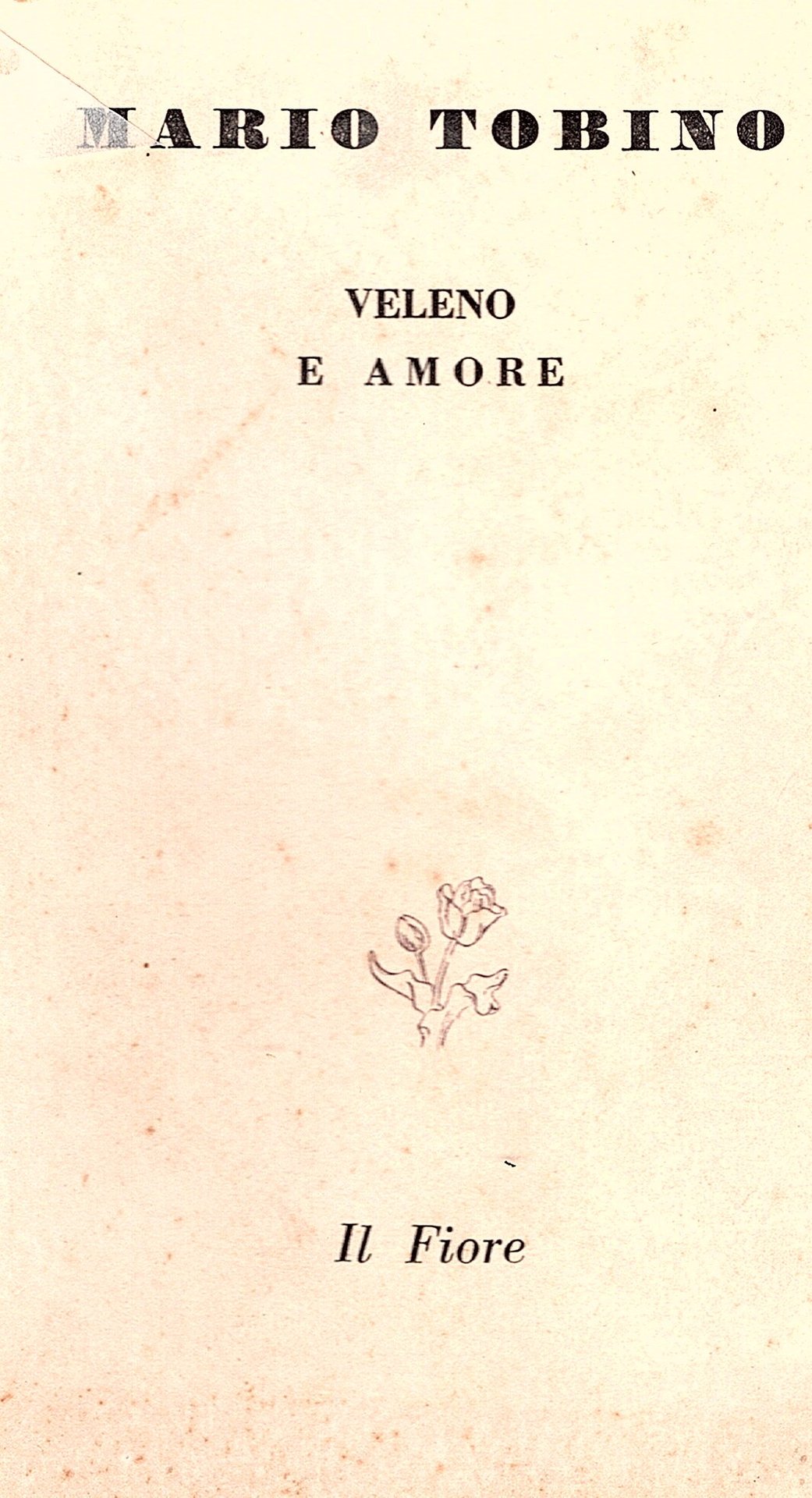 In-16° (185x118mm), pp. 60, (4), brossura editoriale con titoli in nero al dorso e al piatto anteriore. All'antiporta un ritratto di Tobino di Mario Marcucci. Più che buon esemplare (N° 168/350) della variante tipografica. Più che buon esemplare entro velina. Prima edizione di questo florilegio di 15 poesie. Cfr. Spaducci, p. 290. Gambetti-Vezzosi, p. 913: 'Nel 1943, il residuo della tiratura fu ricopertinata dalle edizioni 'Il Fiore' di Firenze'.