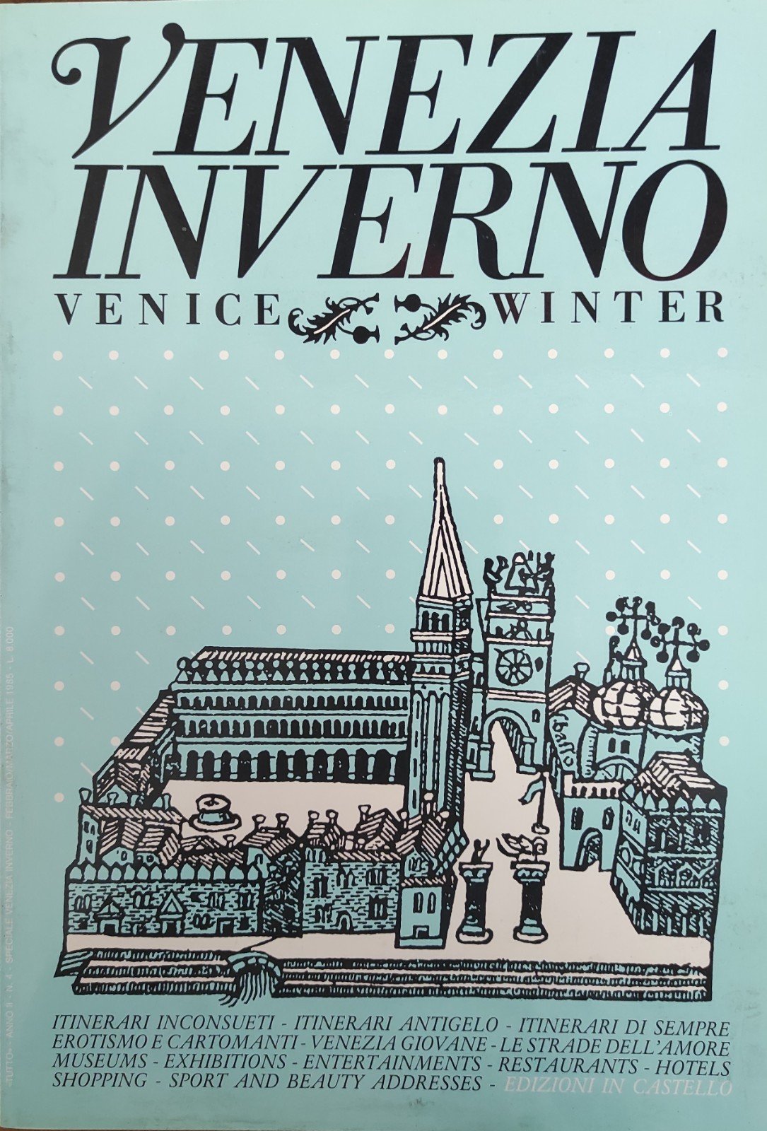 itinerari inconsueti, itinerari antigelo, itinerari di sempre, erotismo e cartomanti, venezia giovane, le strade dell'amore, museums, exhibitions, entertainments, restaurants, hotels, shopping, sport and beauty addresses. ill. in bianco e nero. in quarto leg. bross. pp. 96 Buono (Good) Buon es..