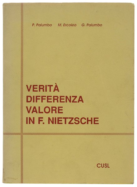 VERITA' DIFFERENZE VALORE IN NIETZSCHE | Libri antichi e moderni | Palumbo P., Ercoleo, Palumbo G.