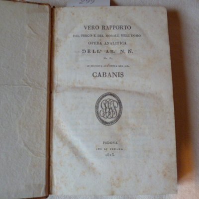 Vero rapporto del fisico e del morale dell'uomo - opera analitica in risposta all'opera del sig. Cabanis ( con ulteriori analisi ) | Libri antichi e moderni | A. Bigoni