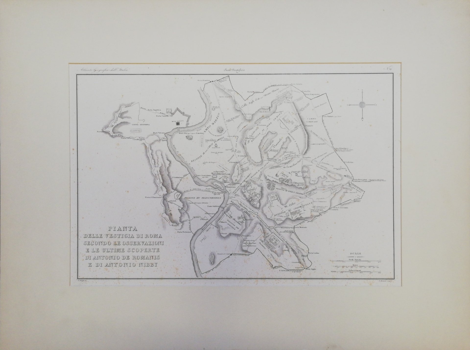 Pianta della vestigia di Roma secondo le osservazioni e e ultime scoperte di Antonio Da Romanis e Antonio Nibby.